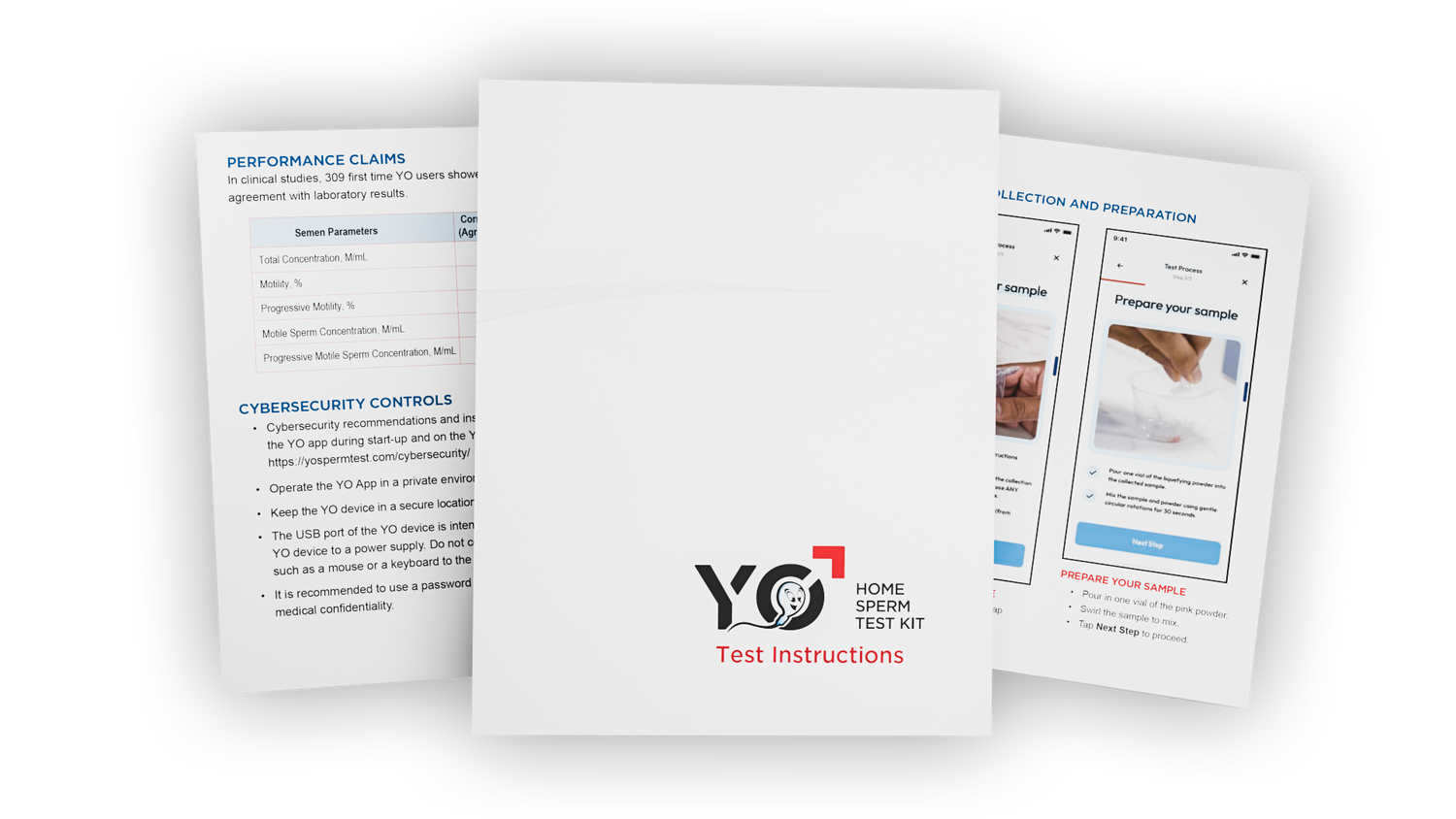 A private, easy way to check sperm quality at home with no lab visit or mail-in needed. With over 97% accuracy, YO measures Sperm Concentration, Motility, Progressive Motility, Motile Sperm Concentration, and Progressive Motile Sperm Concentration and even records a live video of your sample. Doctor-recommended, FDA-cleared, WHO 6th Edition Compliant, and shipped discreetly.
