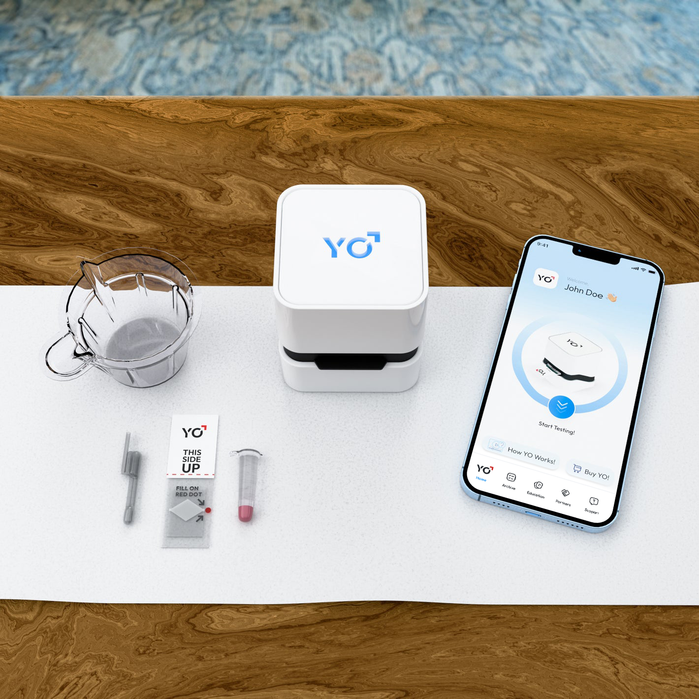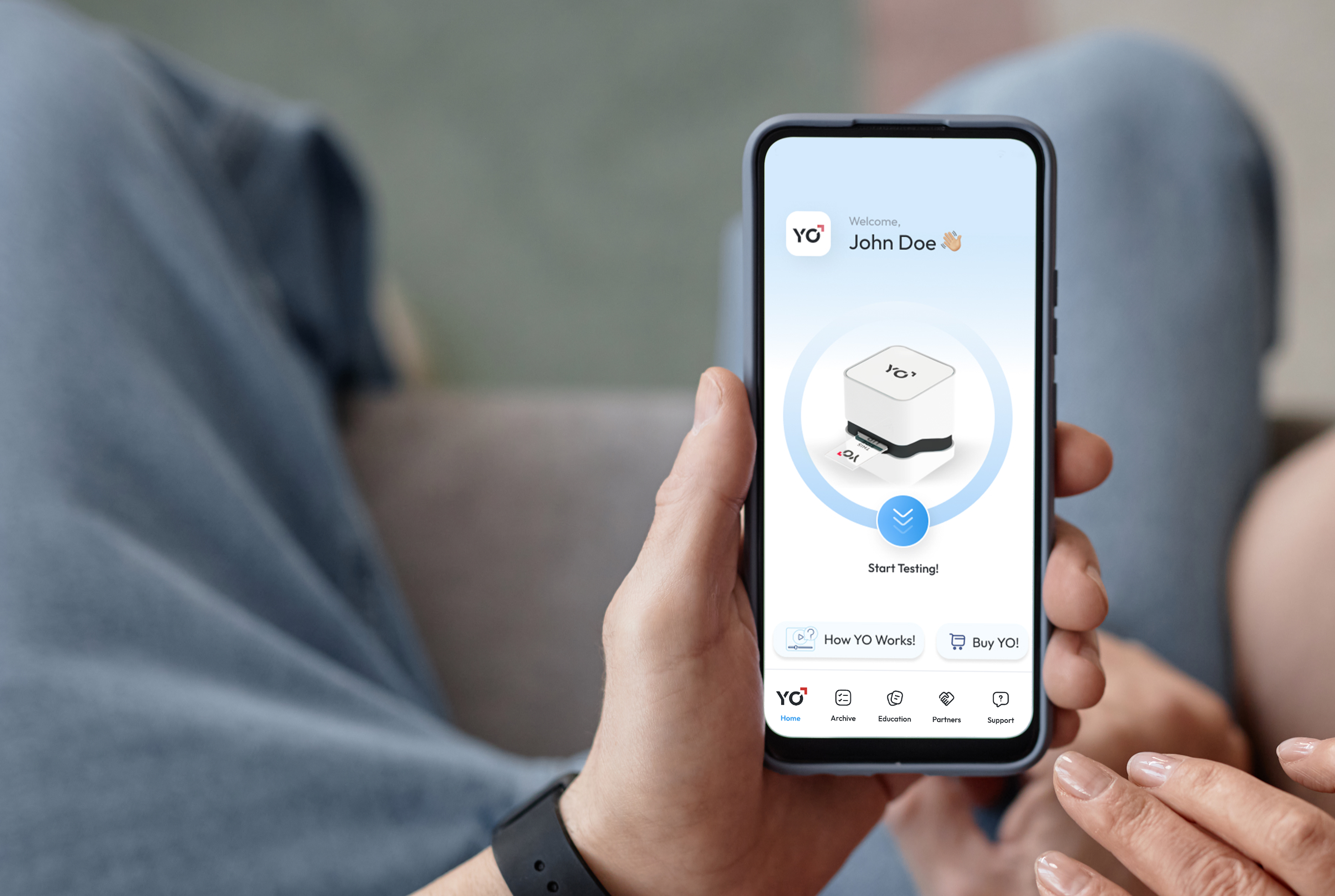 Discreet testing in the comfort of home, with results encrypted and stored securely in the YO app.
